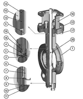 ANSI/FCI 70-2規(guī)定了控制閥的泄漏等級和試驗程序。其中VI級為低泄漏等級。高性能對夾式蝶閥能達(dá)到規(guī)定的無氣泡密封,要高于VI級。 耐火閥座 耐火閥座是考慮在火燒時需要有效關(guān)閉時使用的。是以金屬座圈鑲嵌PTFE, PTFE作為首道密封。當(dāng)PTFE燒壞時,金屬座圈作為第二道密封進(jìn)行有效的關(guān)閉。耐火閥座也適用于關(guān)鍵的或嚴(yán)峻的使用工況。帶耐火閥座的兩門按API607第4版和BS6755第二部分經(jīng)過試驗并獲得認(rèn)可。 |